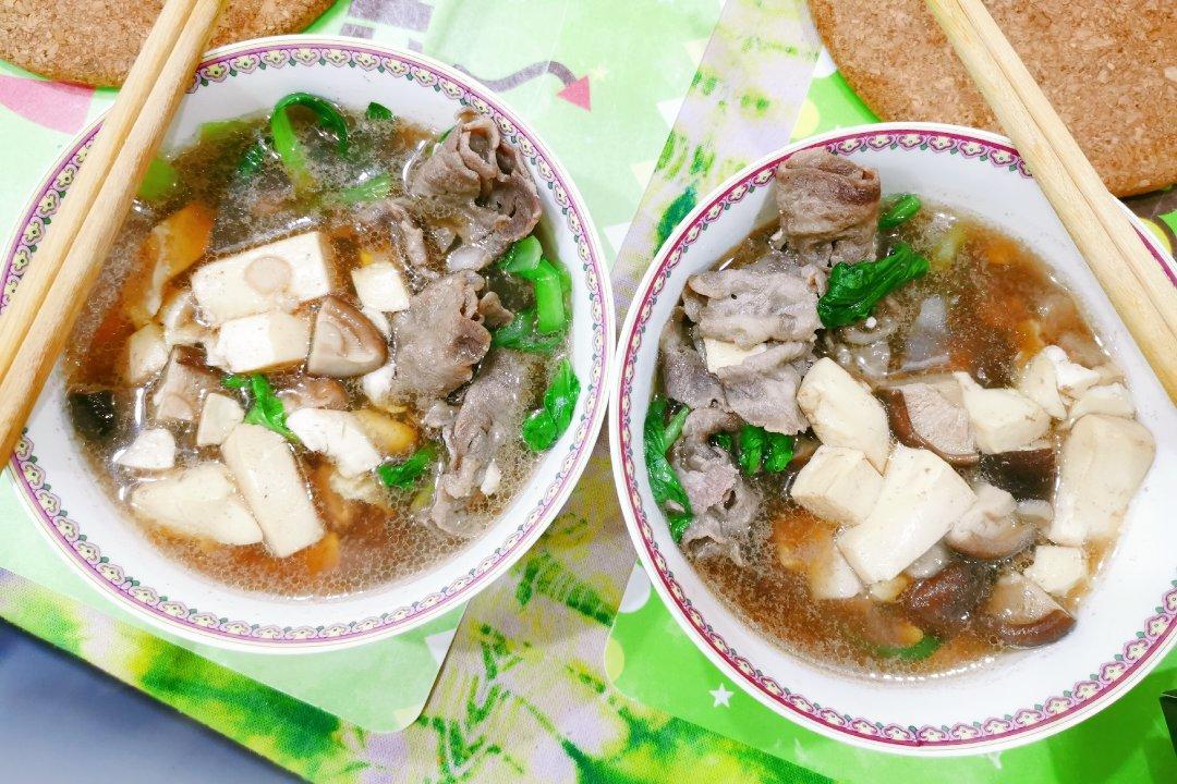牛肉蘑菇豆腐鸡毛菜寿喜锅,连洗菜十分钟好,超级快手。唯一遗憾就是燕麦先生买的盒马的牛肉卷,有点肥的肉,下了牛肉卷之后飘油...