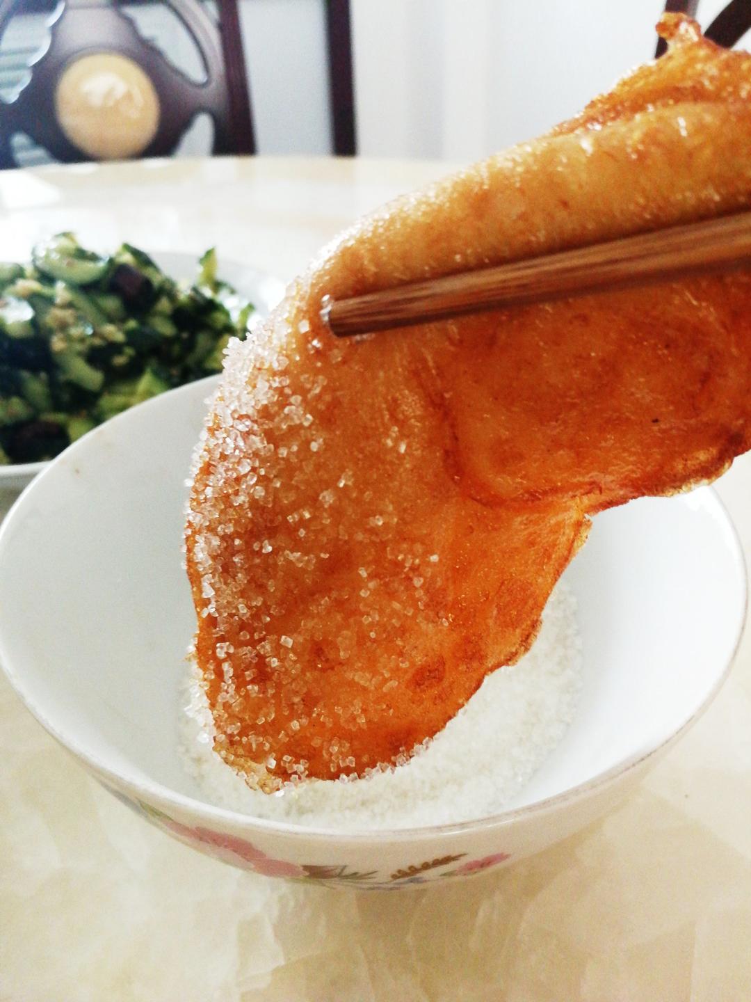 老家的油糕!刚炸出来,软软的糯糯的,周围脆脆的,沾着白糖吃,真是好吃啊!