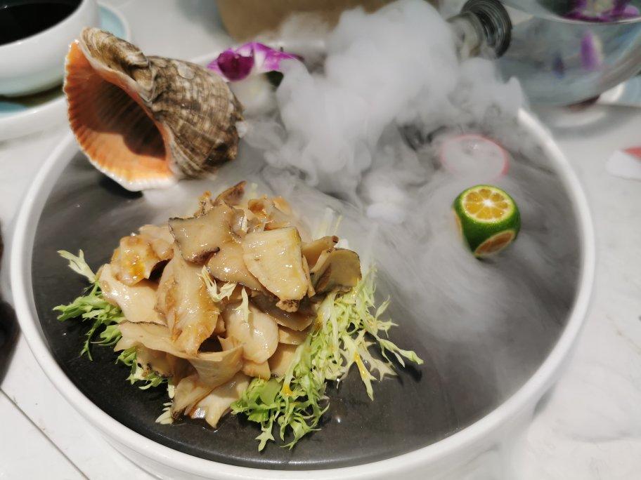 第一市场买了几兜海鲜,海胆八元一只、扇贝一元一只,拎到旁边美食街...