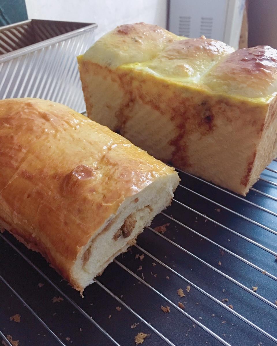 第三次用这个配方,500克做蔓越梅吐司+一个小的肉松卷吐司,非常好吃,糖自己可以加到70克,可以甜点