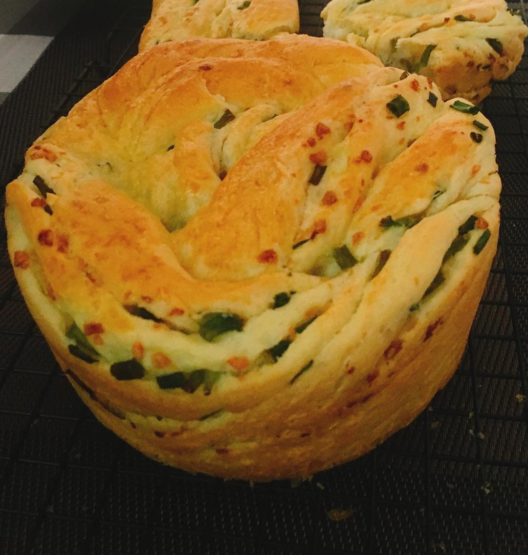 家里没有吐司模具,也没有肉松了。就做了一个蒜香面包。很香