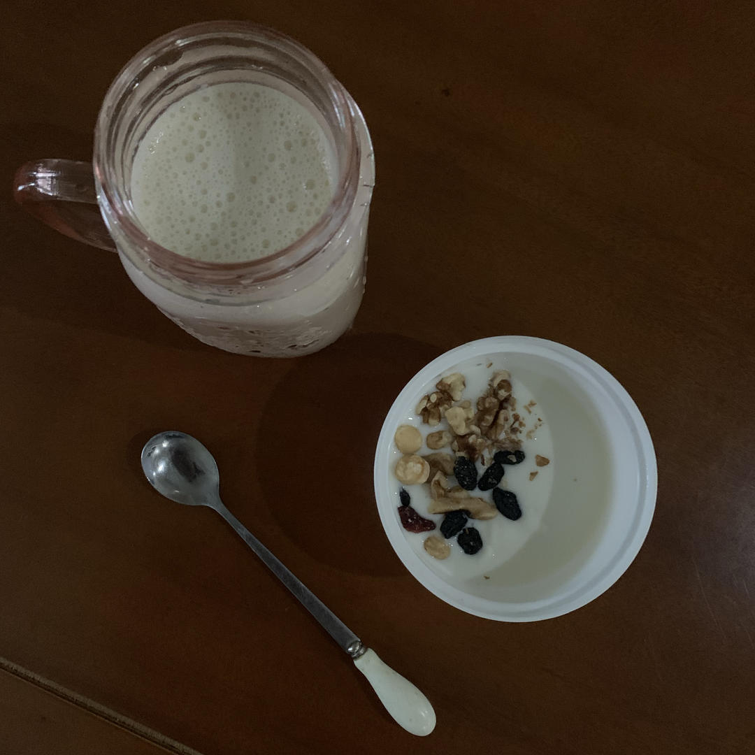 Day 5-昨晚熙熙生日吃了蛋糕,外婆送了香蕉,今早便做了香蕉奶昔,伴坚果酸奶😁