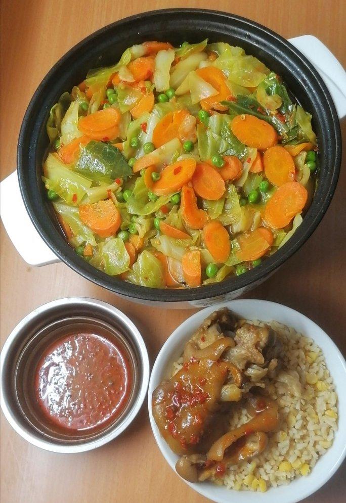 胡萝卜豌豆卷心菜,可以多吃点,吃饱为止...