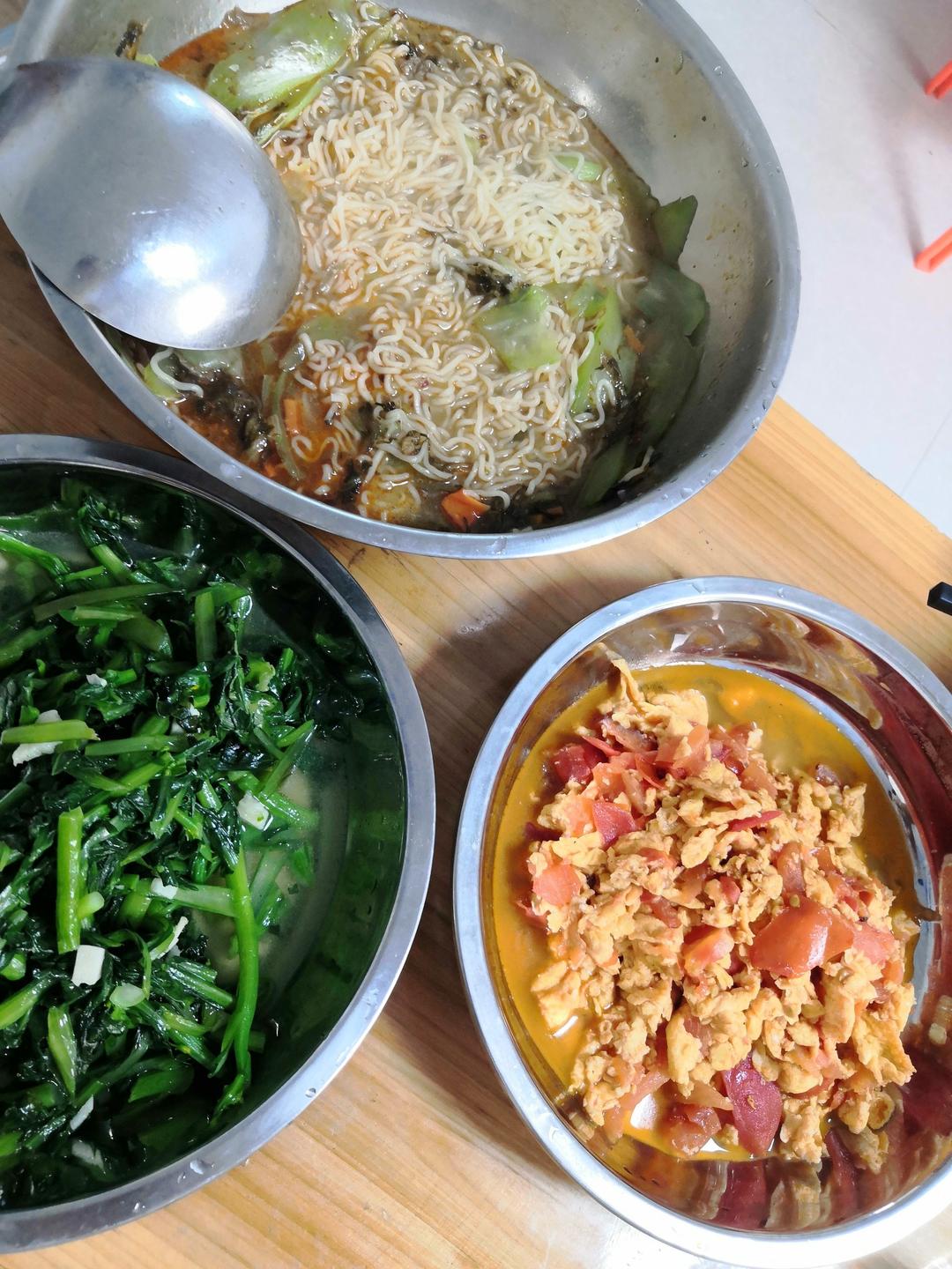 方便面 番茄炒鸡蛋 炒青菜