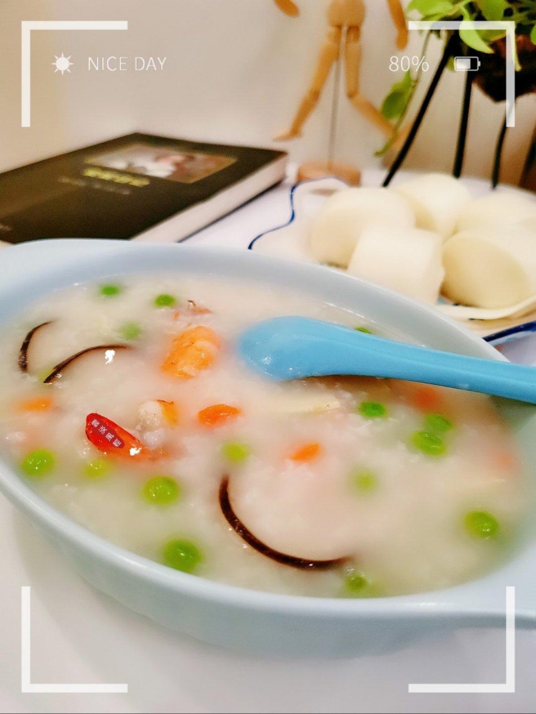 海鲜粥+牛奶馒头