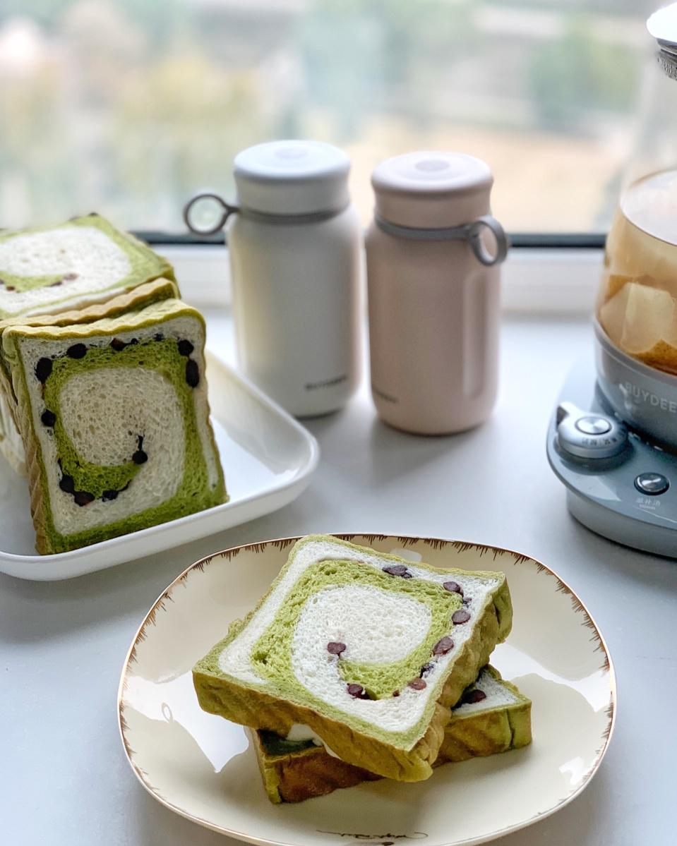 抹茶蜜豆吐司切开每一片都惹人喜爱,颜值与美味并存的双色吐司。