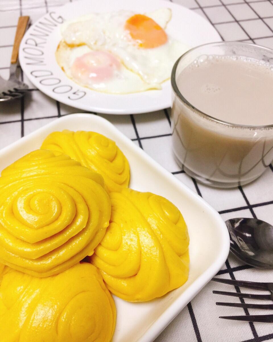 前天晚上做好的南瓜馒头早上起来加热一下➕预约好的核桃豆浆,再煎几个荷包蛋算是快手早餐了😄#早餐•2...