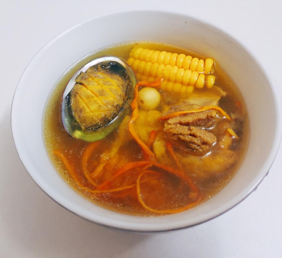 虫草花鲍鱼大骨汤,抗疲劳补气血,提高免疫力。配佐料干莲子,枸杞,红枣若干,一个半小时,美味到家🥳#加班狗的...
