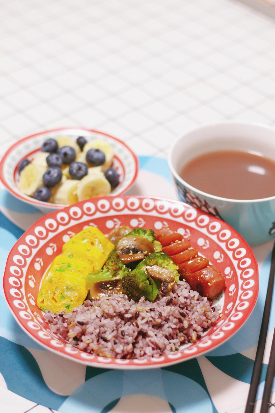蓝莓加香蕉,腰豆薏仁汤~