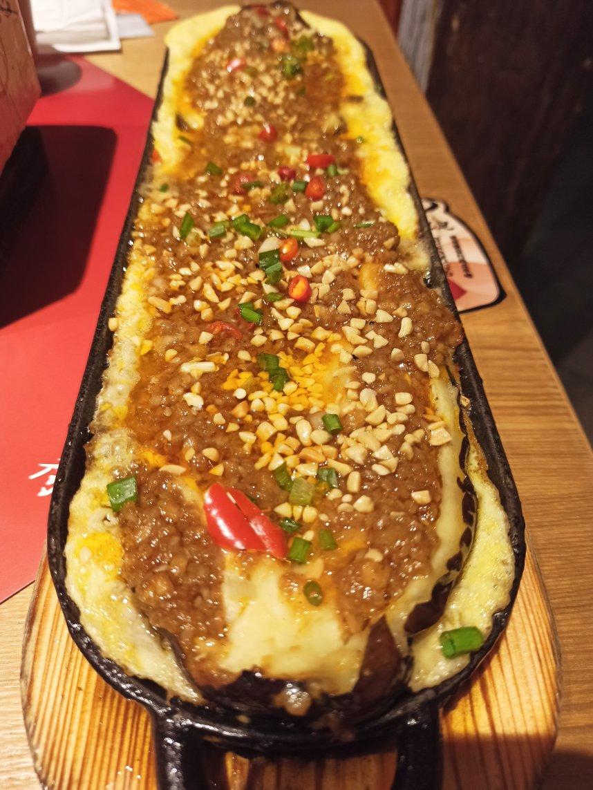 191125今日午餐at大肆撸串at愚园东路,铁板双蛋烤茄子~