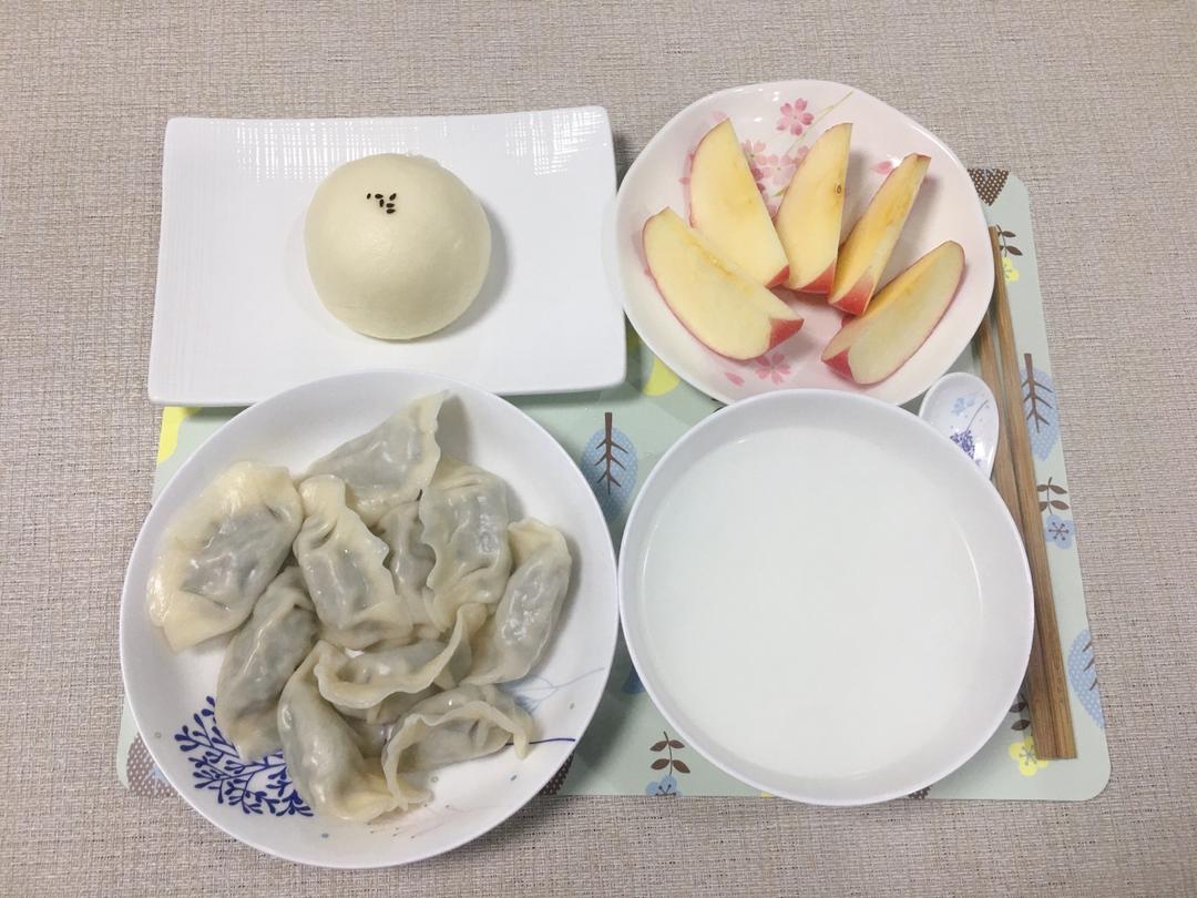 猪肉荠菜饺子+豆沙包+苹果