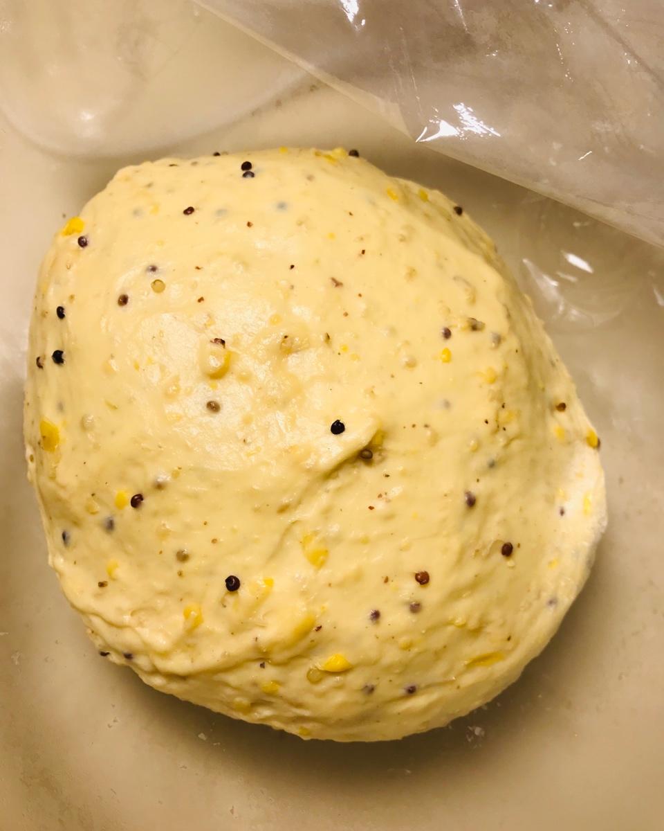 用的是三色藜麦,玉米碎好像出炉以后比较硬,但是吐司非常软