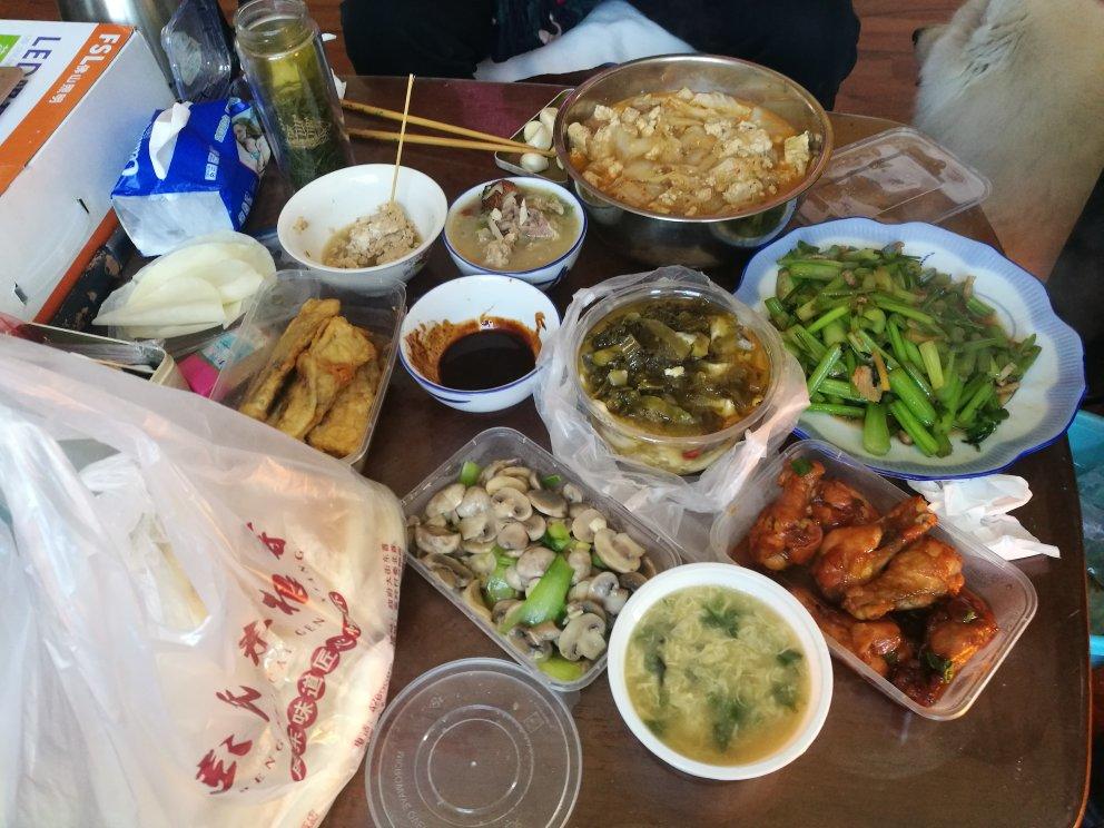 妈妈炖了大白菜,结果老爸从饭店带回来好些个菜,一下子丰富的过分了😂