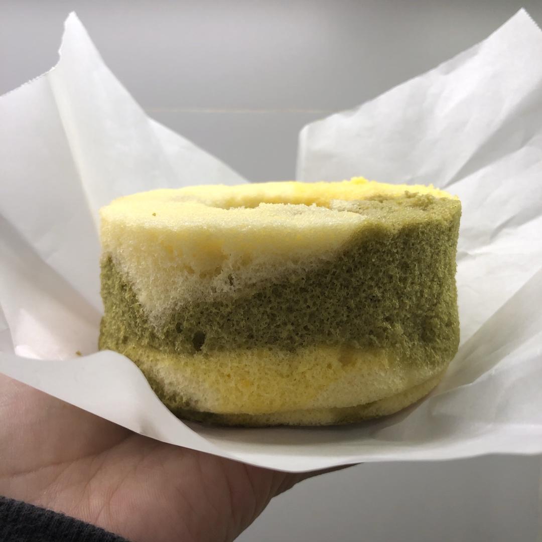 改成了4寸的,用抹茶粉代替菠菜。感觉蛋清可以稍微打干一点点,流动性没有那么强的话,花纹会混合的比较好看,不然就是一大片了...