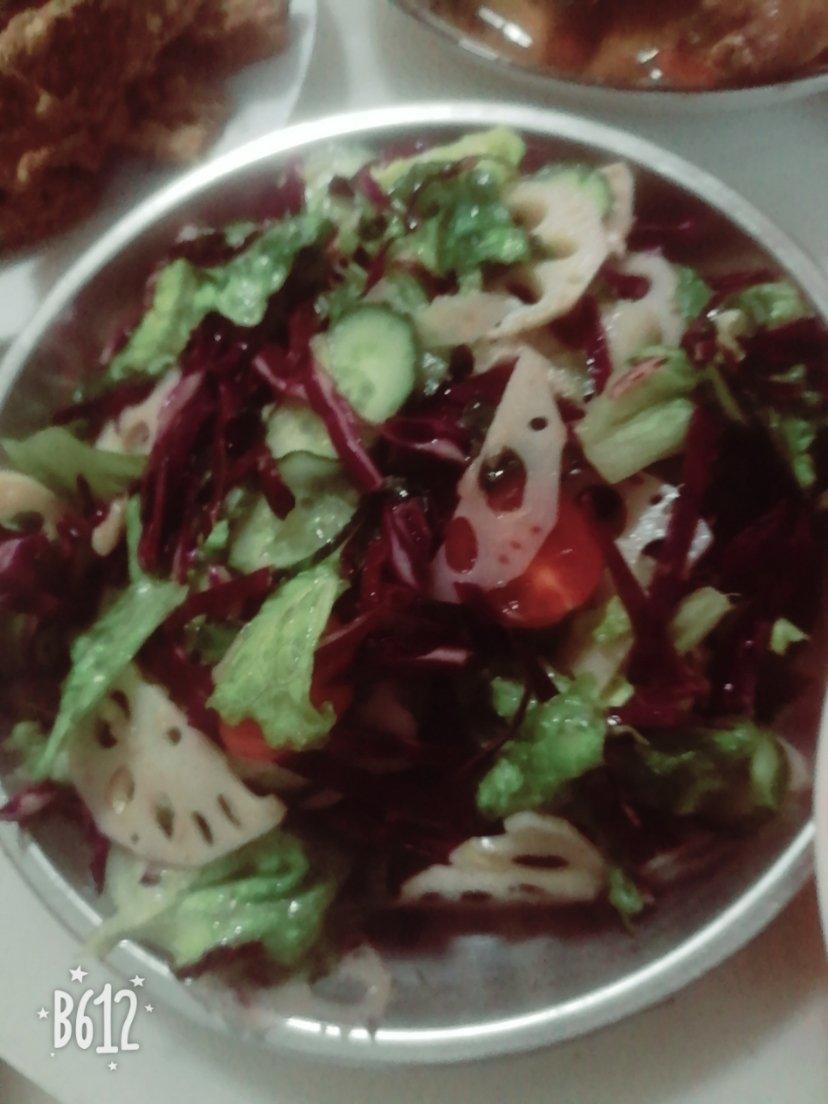生菜,紫甘蓝,黄瓜,藕,千禧果,直接做了两份的量,我的妈呀也太好吃了吧,酸甜口而且还有种像芥末似的冲冲呛呛的劲儿~超级爽...