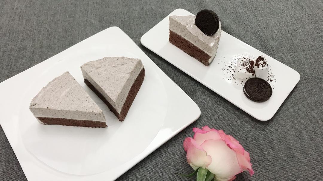 底层是加了巧克力的可可味古早蛋糕。方盘烤的古早,切圆片做底(早知道一开始就该用这个圆形8寸蛋糕模做古早),倒慕斯糊的时候...