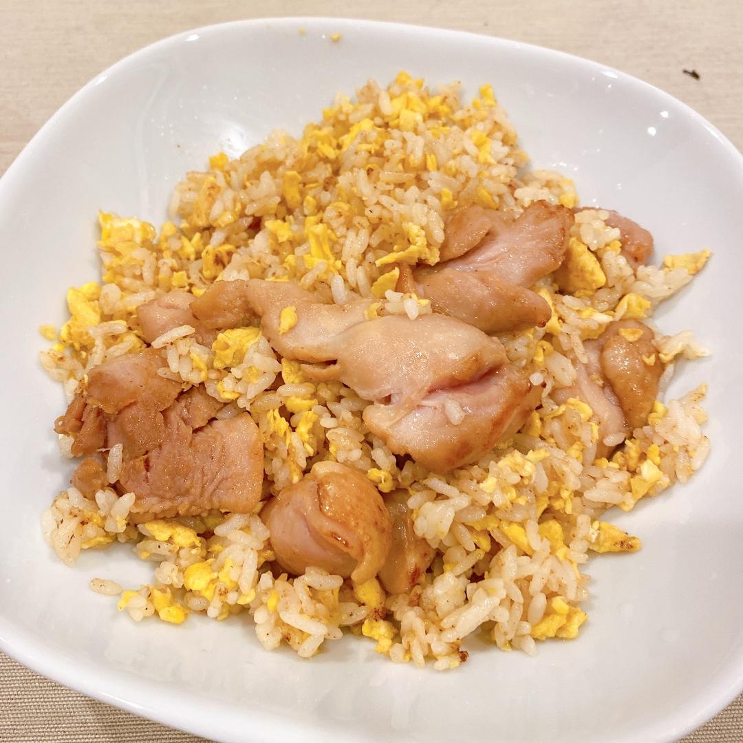 下午鸡腿🍗剔骨用李锦记的蒜酱腌制了一下, 可以用测温度的工具戳洞,橄榄油煎一下。炒饭的蛋液...