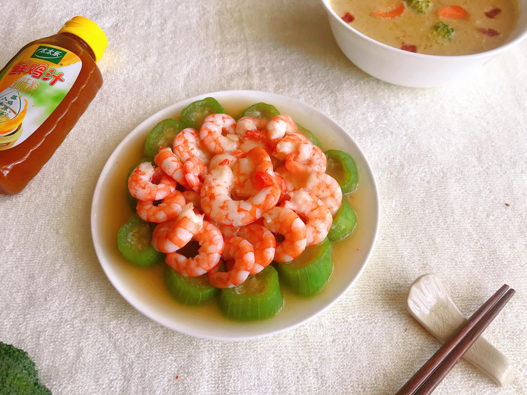 鸡汁上汤丝瓜选用的是那种长的象黄瓜的长丝瓜,用刀直接在丝瓜皮上瓜,丝...