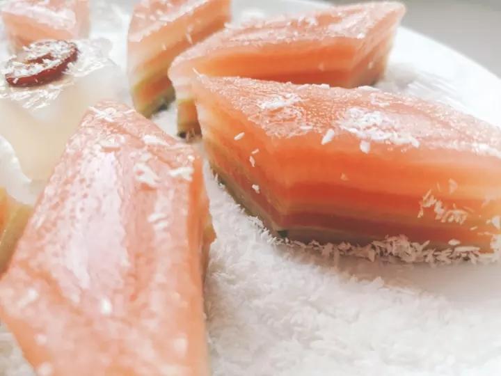 用的芭乐榨汁替代火龙果,自己还加了抹茶粉做了绿色层,做完颜色看着很棒