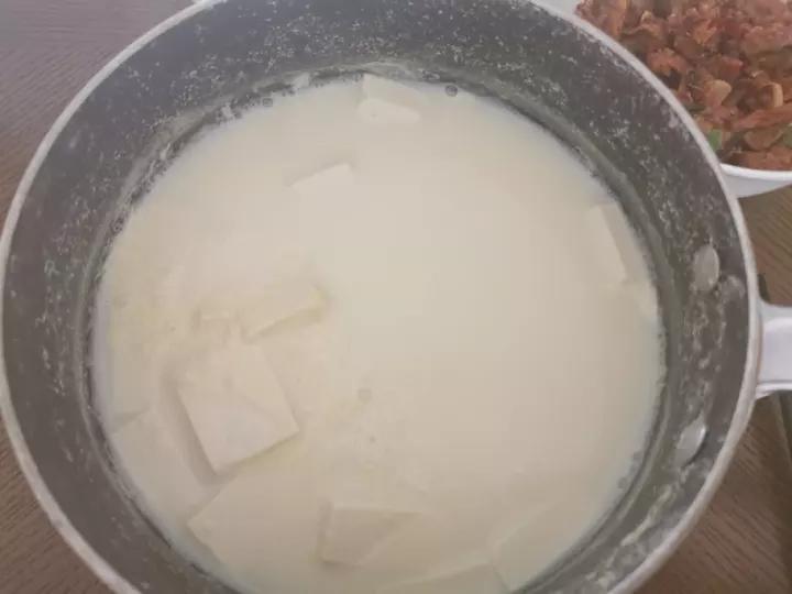 自己磨的豆浆煮韧豆腐,辣椒肉丁和薄荷叶做沾水,配平坝大米饭,美味佳肴嘞