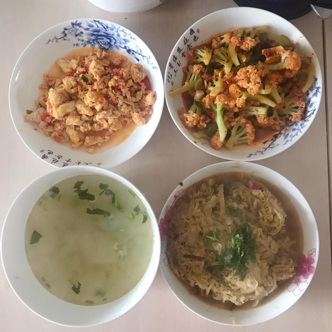 白胡椒味儿的冬瓜汤,国菜西红柿炒蛋,正宗炒东北酸菜,辣炒有机花菜,个个都是下饭神器,我一口...