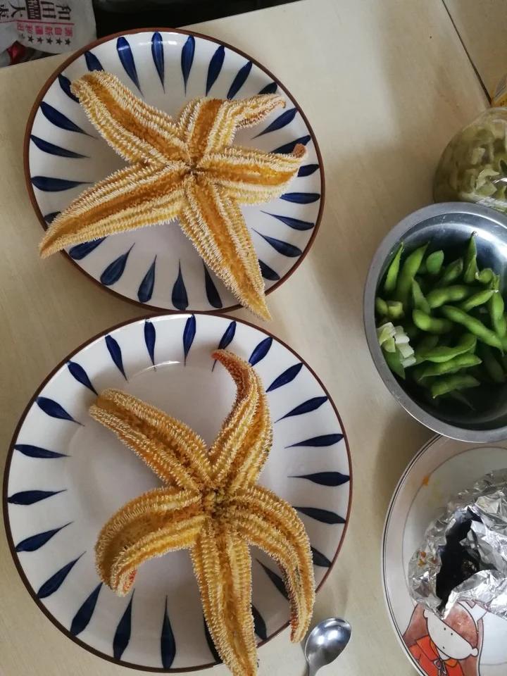 放锅里蒸17分钟,闷三分钟,感觉有点老了,或者是冷冻海星就是这样,吃着有点硬,不是很香