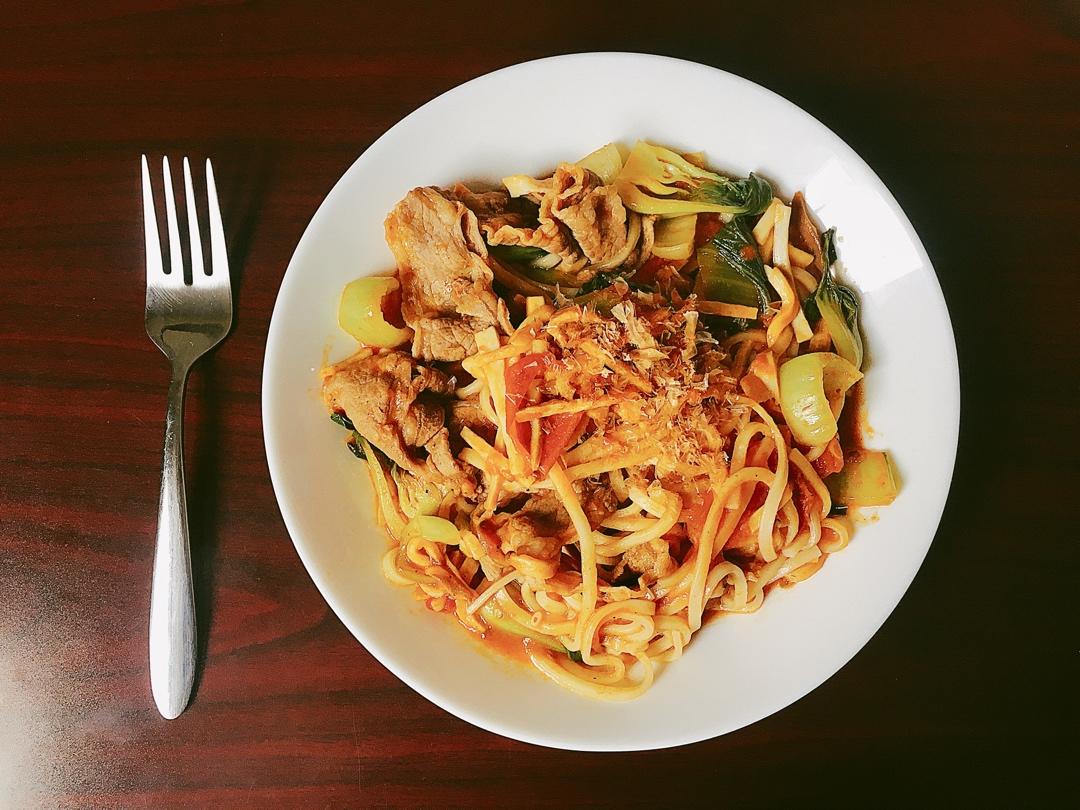 加了些辣椒粉和午餐肉,简单好吃😋