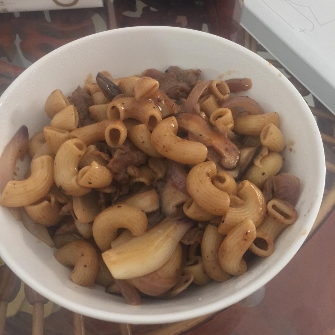 我是先把腌制好的牛肉炒到5分熟,再另外放黄油花生油炒熟洋葱香菇,再倒入牛肉炒炒加入煮好的...