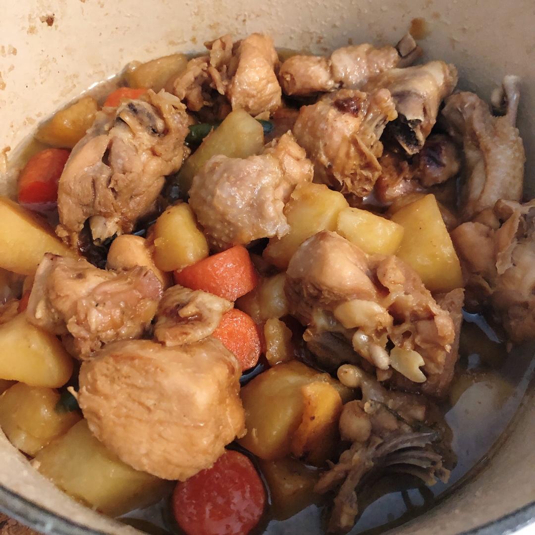 没有香菇了,加了辣的青椒和土豆胡萝卜~