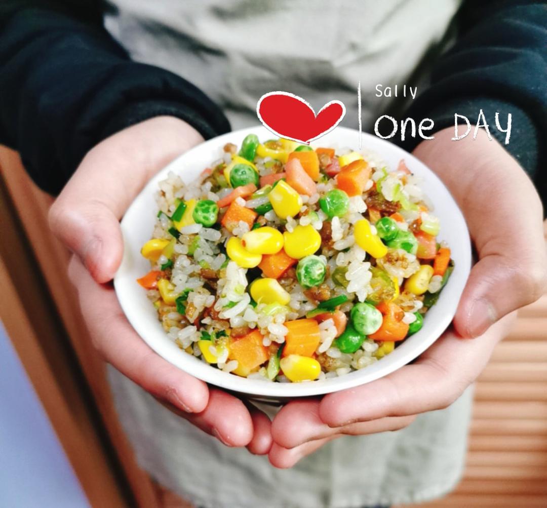 一碗❤️爱心美式杂菜炒饭,简单、快捷。