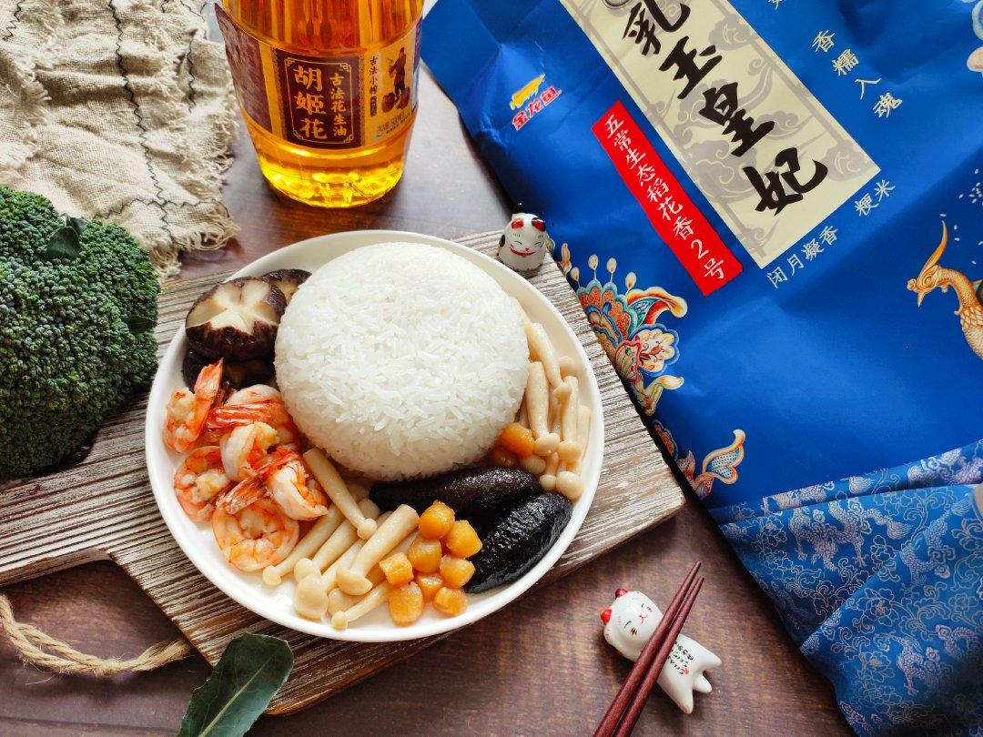 营养丰富又美味,超级满足的一份菌菇海参鲜虾捞饭!用金龙鱼乳玉皇妃稻香贡米焖的米饭🍚,...