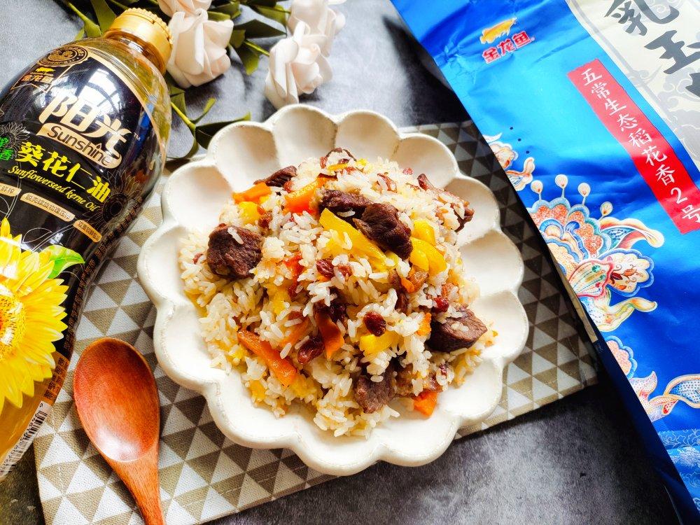 吼吼~在新疆人人都会做的新疆羊肉碎肉抓饭吃起来~~~