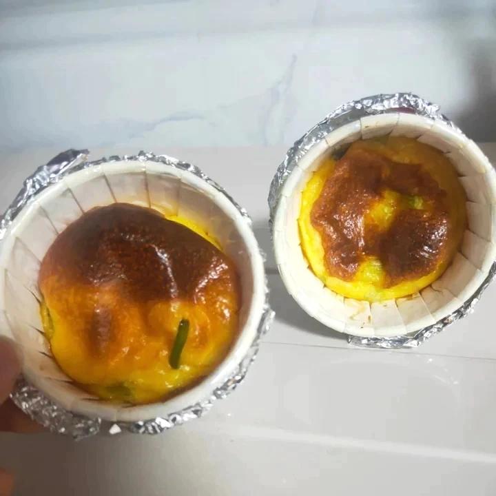 鸡蛋38g,淡奶油30g,赤藓糖醇3g,葱1g,上层上管200,22分钟,是扁的,并且没...