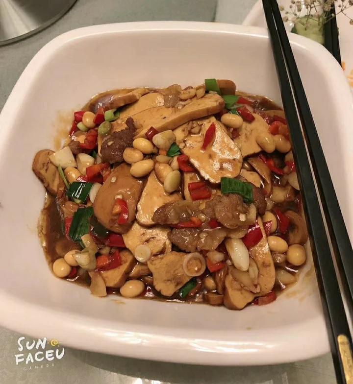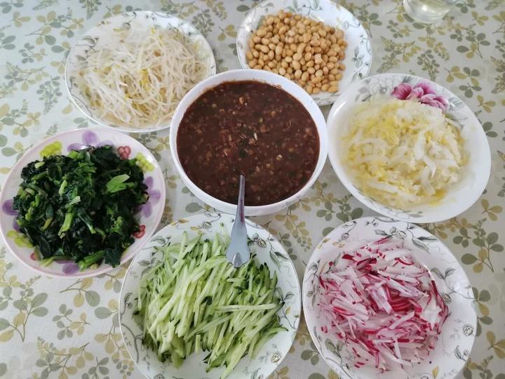 料汁:一勺生抽+一勺糖+两勺豆瓣酱+适量盐。
