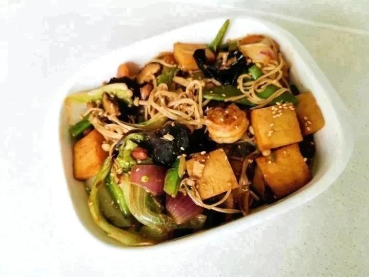 可以吃到很多样,去头红虾,鱼豆腐,金针菇,木耳,香菇,花生米,生菜,芹菜,...