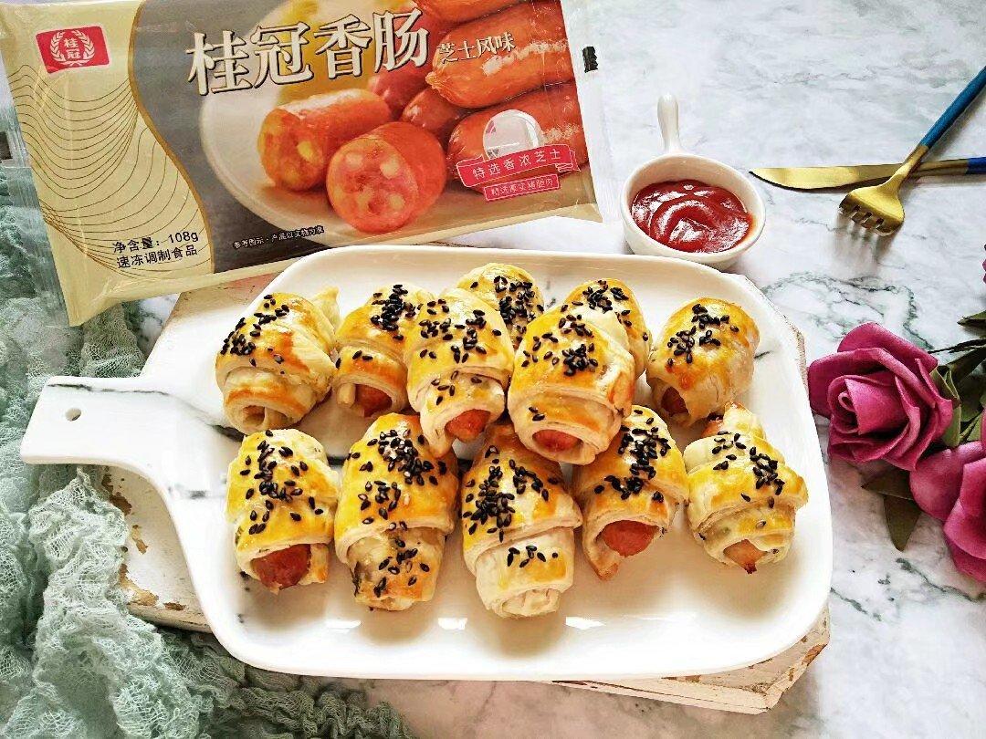 桂冠香肠+桂冠飞饼,一卷一烤,简单快手,一盘香酥美味的香肠脆皮卷就好啦!蘸着番茄沙...