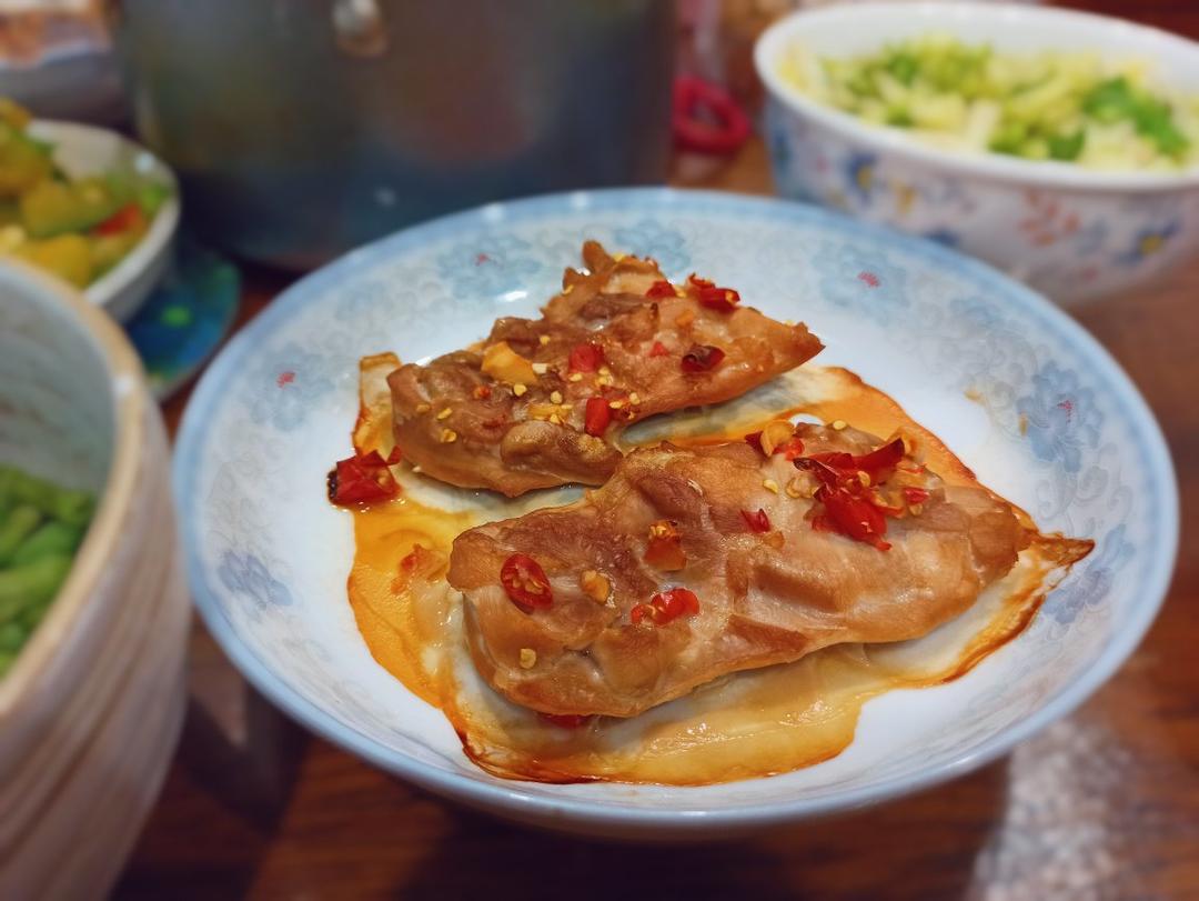 烤箱烤的哈哈,感觉可能还是煎一下好吃呀,把皮去了有点柴……是健康的味道😂