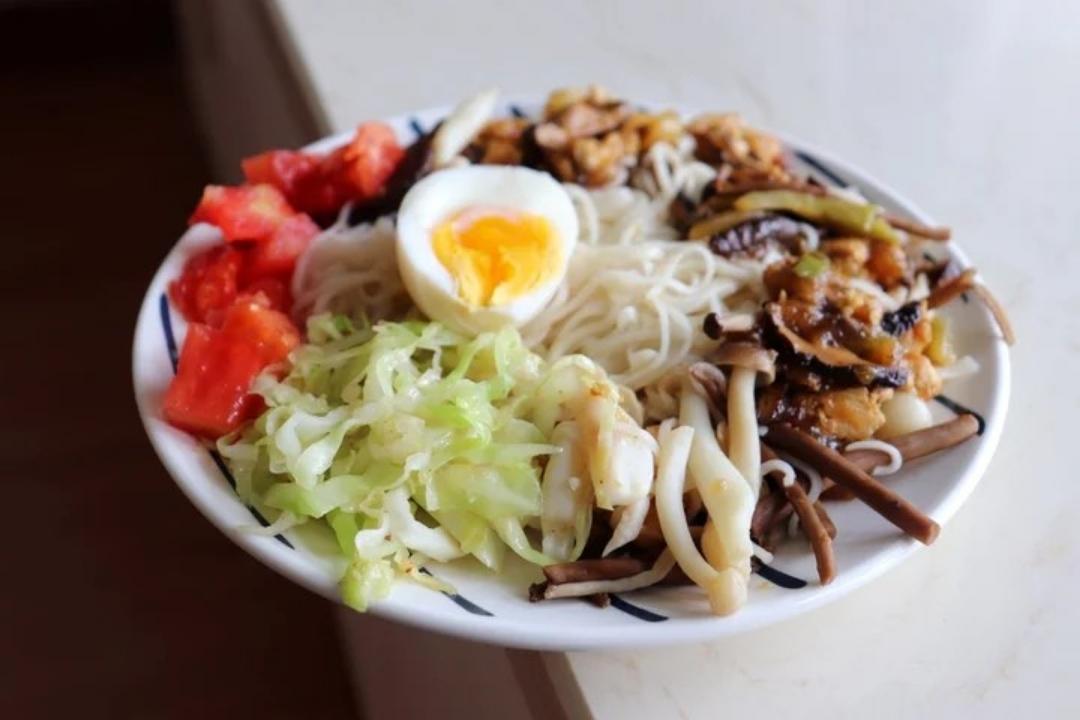 加点包菜凉拌番茄和水煮蛋