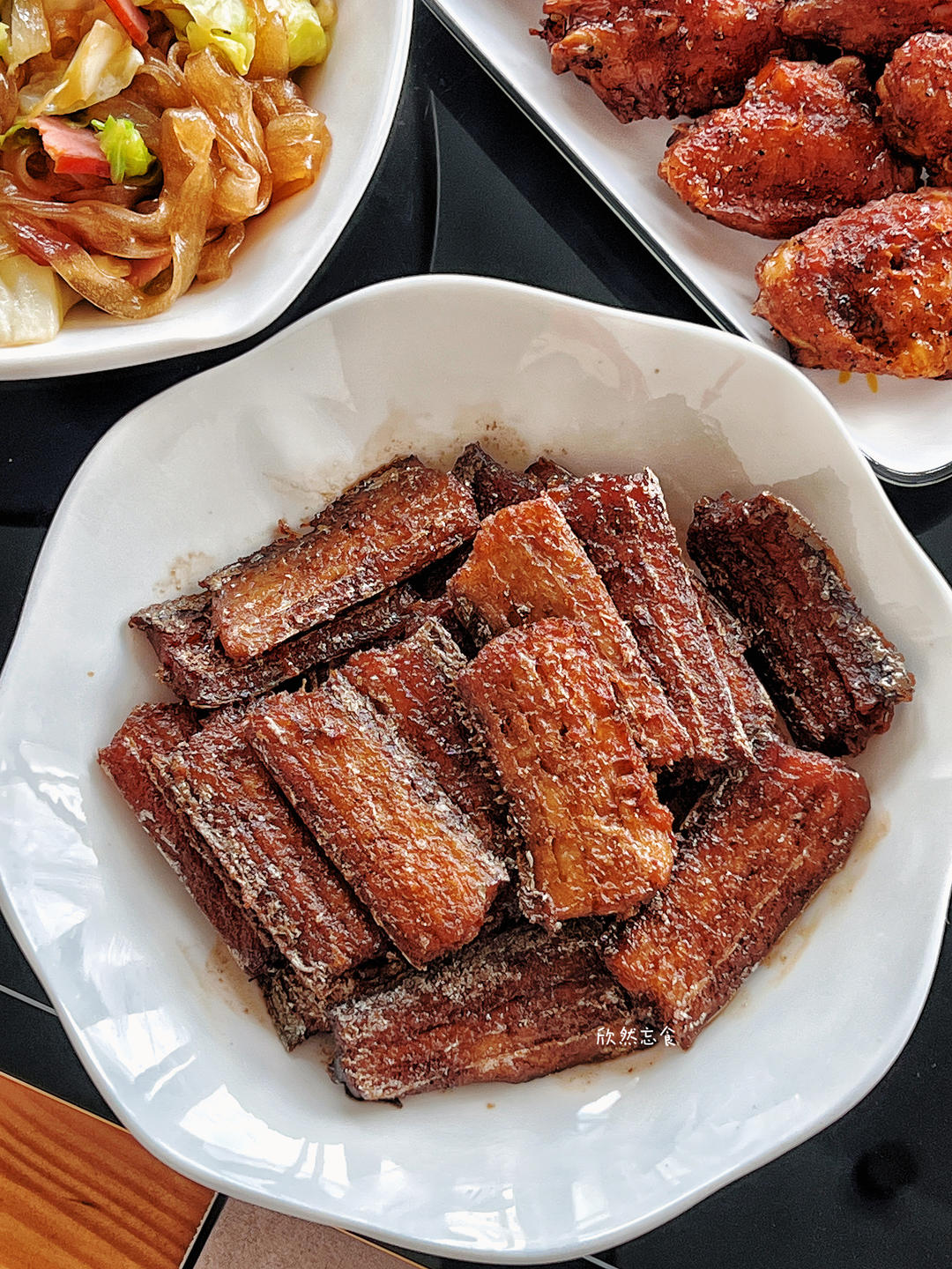 蒸了一锅粗粮做主食,菜色上可得把油水给补齐😆