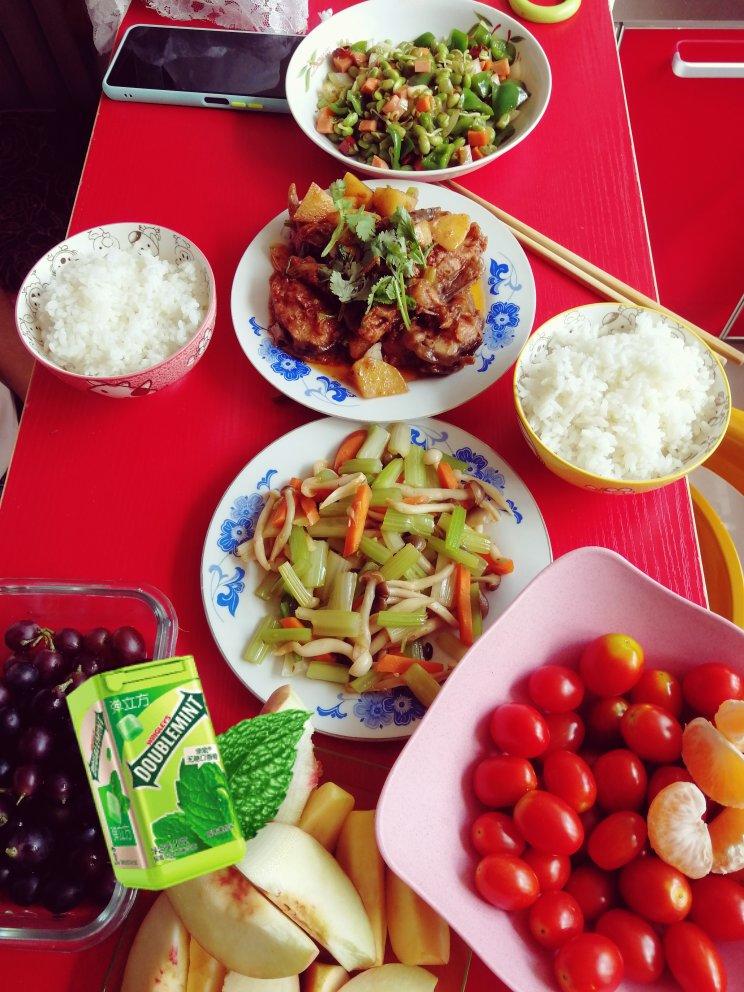 麻辣红烧鳗鱼,炒黑椒杂蔬,凉拌蟹味菇芹菜