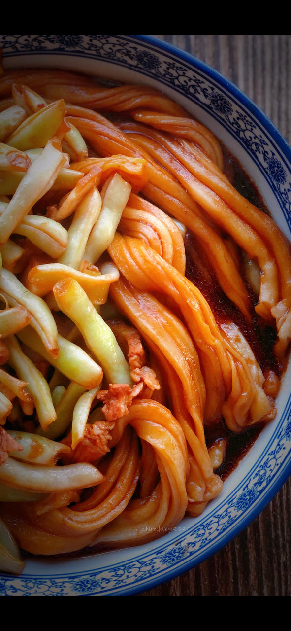 简单晚餐—一锅鲜(豆角焖卷子)