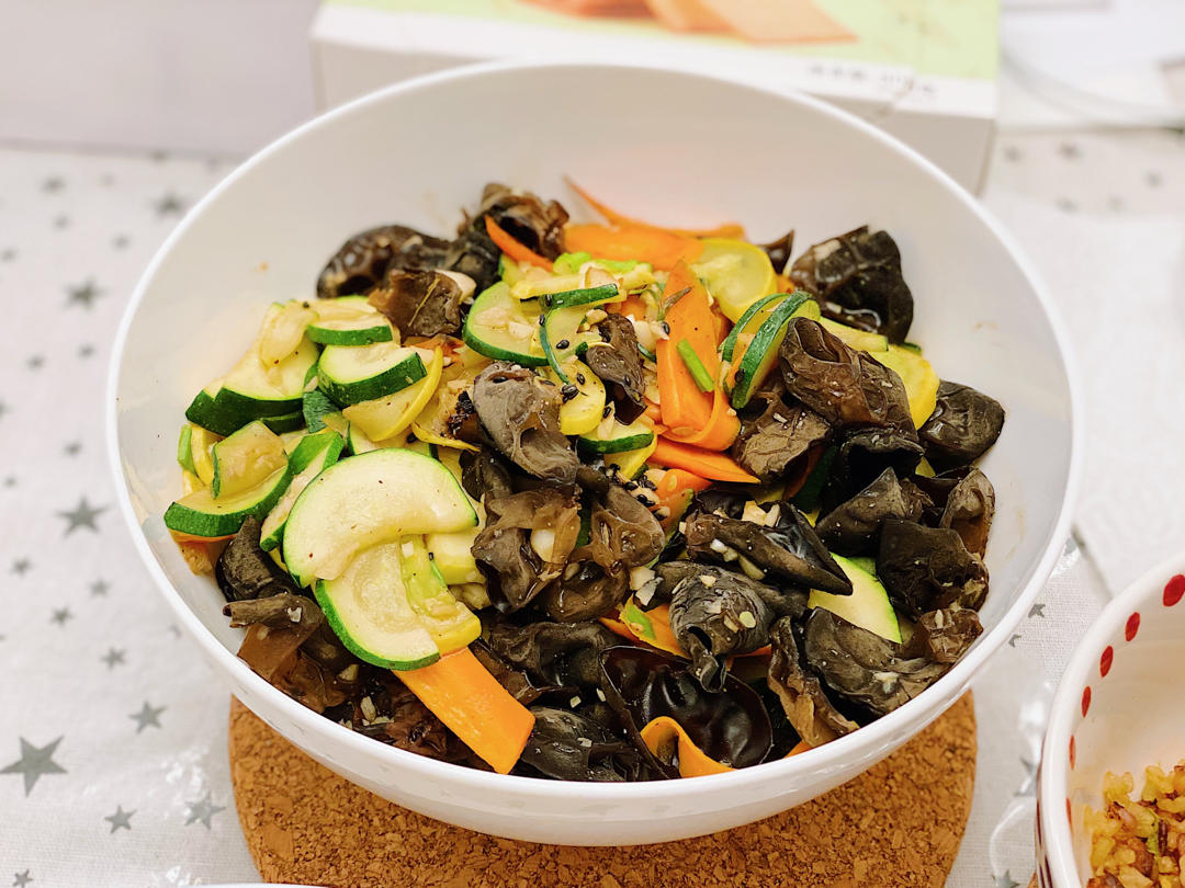西葫芦我买的很嫩就没有腌,没有去皮也没有挖中间那一块,先炒🥕再放木耳炒的差不多了再放西葫芦,西葫芦炒一会儿就好。除了蚝油...