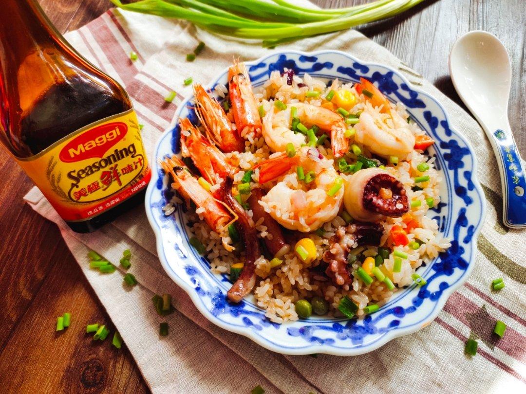 香喷喷的、鲜掉眉毛的美极海鲜炒饭来喽~~~👏👏👏