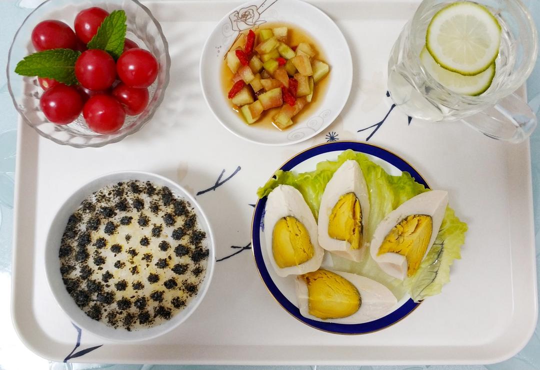 红豆薏米芡实汤+水果莲雾+胡萝卜🥕上海青🥬鸽子...