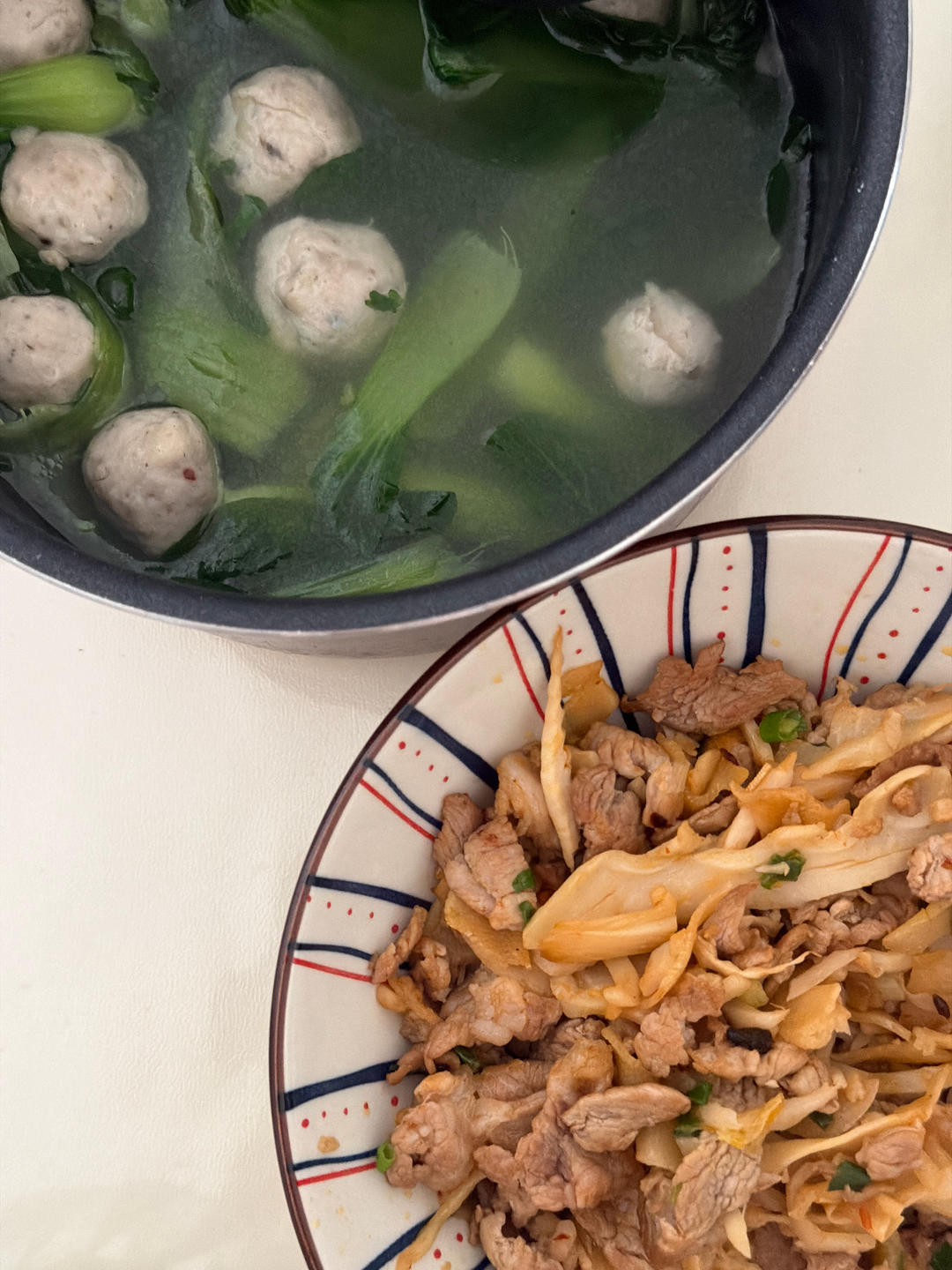 笋炒肉 朋友做的猪肉丸子煮汤 春天味道