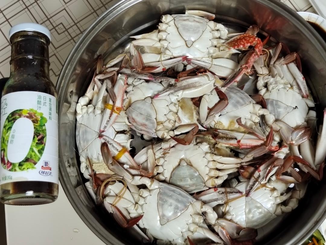 “秋风起、螃蟹肥”!买多了都蒸了!开始先生自己调了三合油,正好家里有味好美...