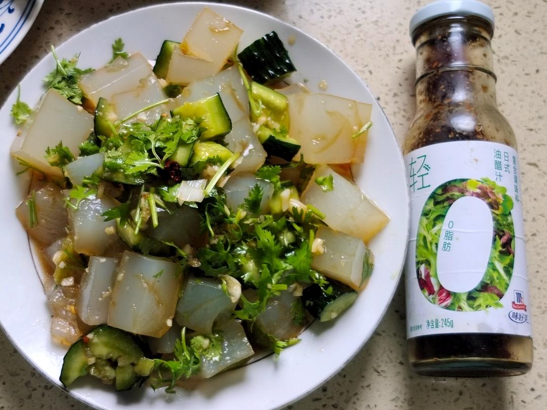 入秋了还是会热,来份凉粉拍黄瓜,加入味好美...