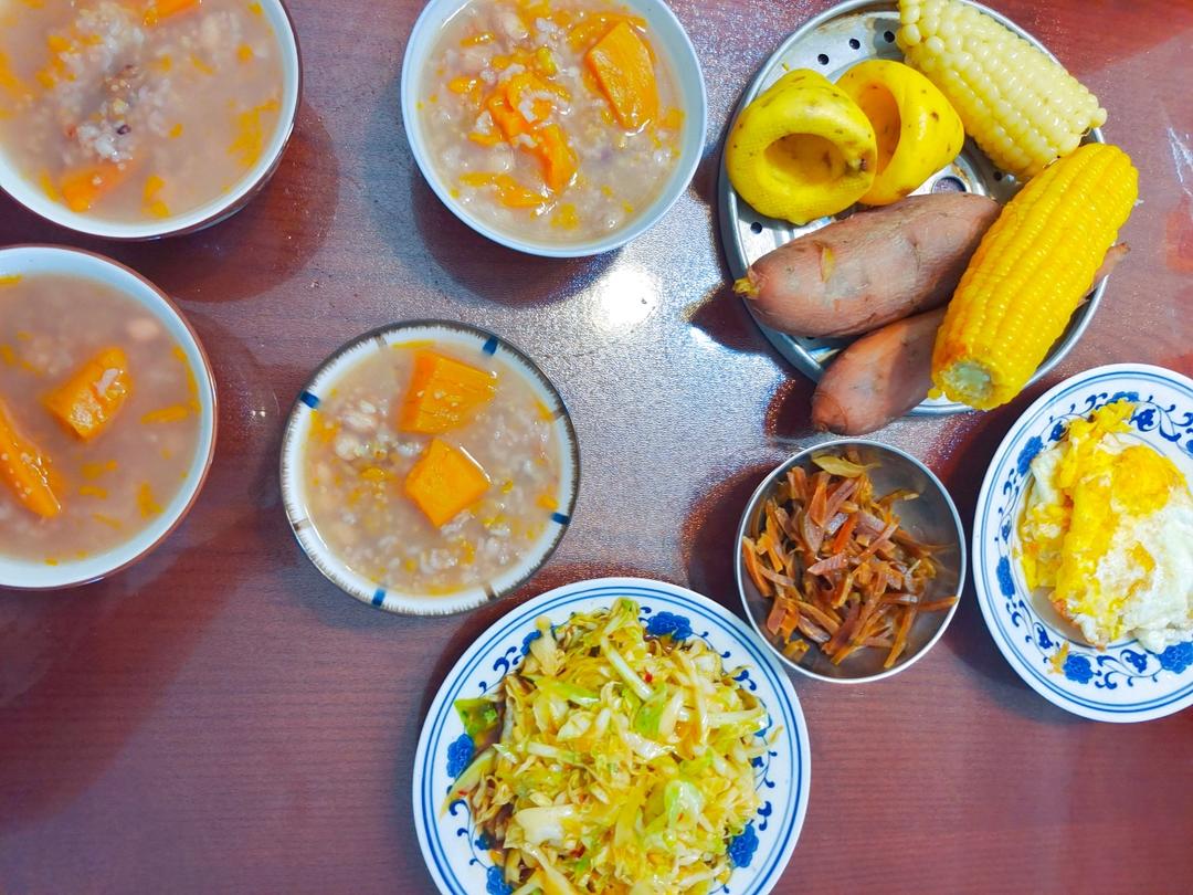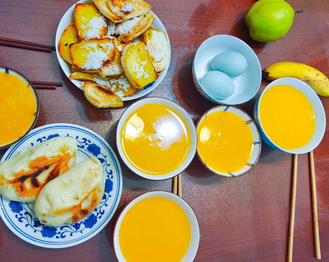 打卡第三天!南瓜米糊、煎蛋🍳、烧饼+酱牛肉!