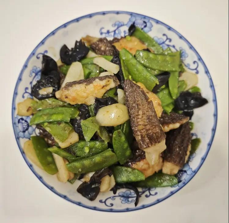 新鲜羊肚菌酿虾滑、荷兰豆、马蹄、黑木耳,都是当季的新鲜食材,鲜甜味美,可以作为我的保留...