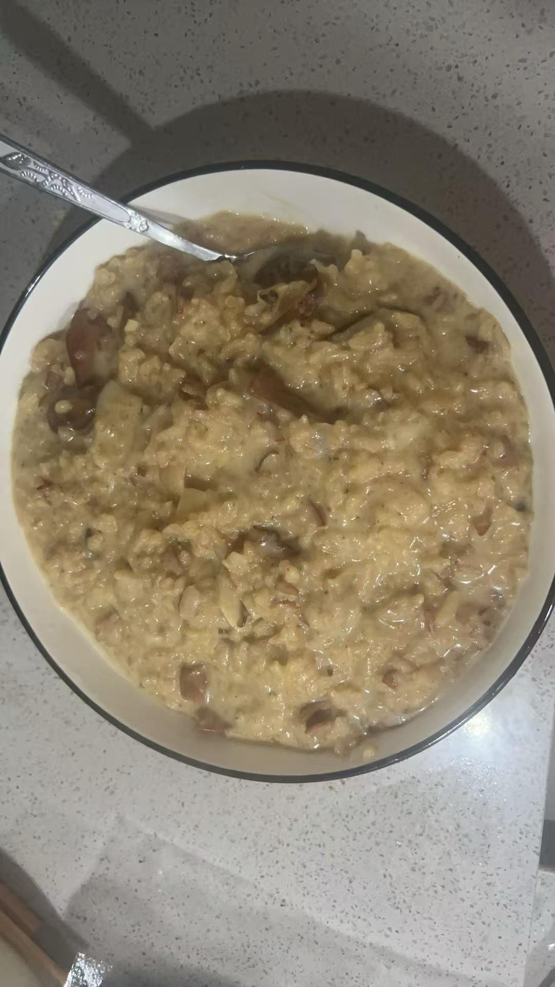 为了避免太咸只放1/4的浓汤宝,选了牛肝菌,白蘑菇,加了淡奶油之后绝了,奶味浓郁,好吃,美味😋